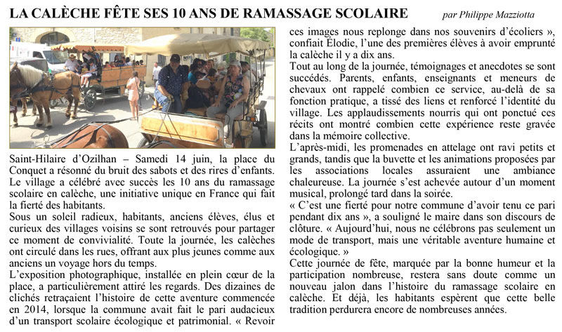 Page 6 Lire LA CALECHE FETE SES 10 ANS DE RAMASSAGE SCOLAIRE Lire Plilippe Mazziotta