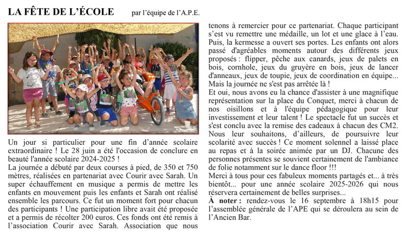 Page 5 Lire LA FETE DE L'ECOLE Lire APE