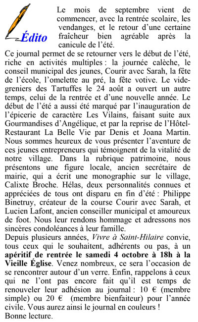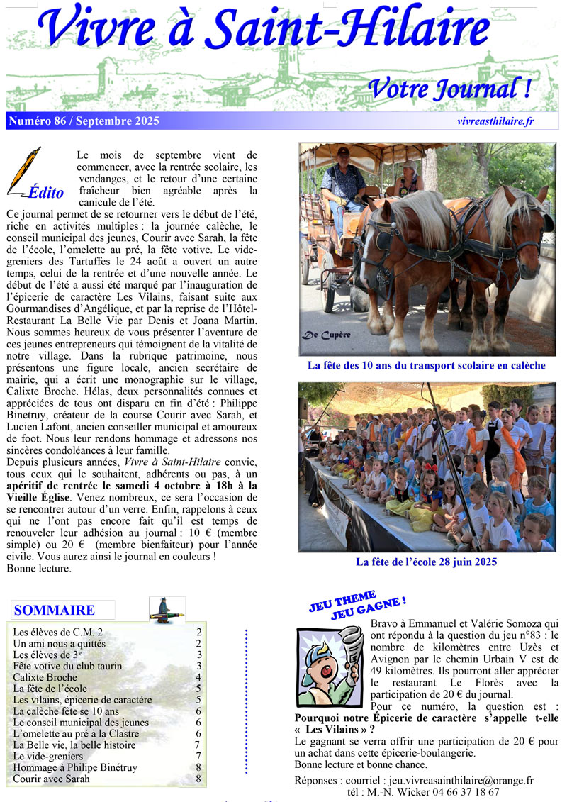 Accueil Contacts - Questions Les annonces Associations - Sites du village Toutes les parutions