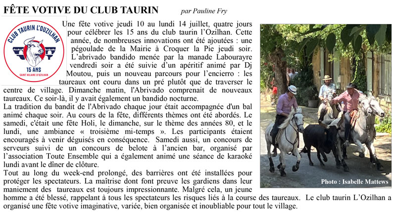 FETE VOTIVE DU CLUB TAURIN Lire Pauline Fry