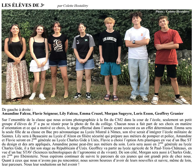 Page 3 Lire LES ELEVES DE 3 ème LireColette Hostalery