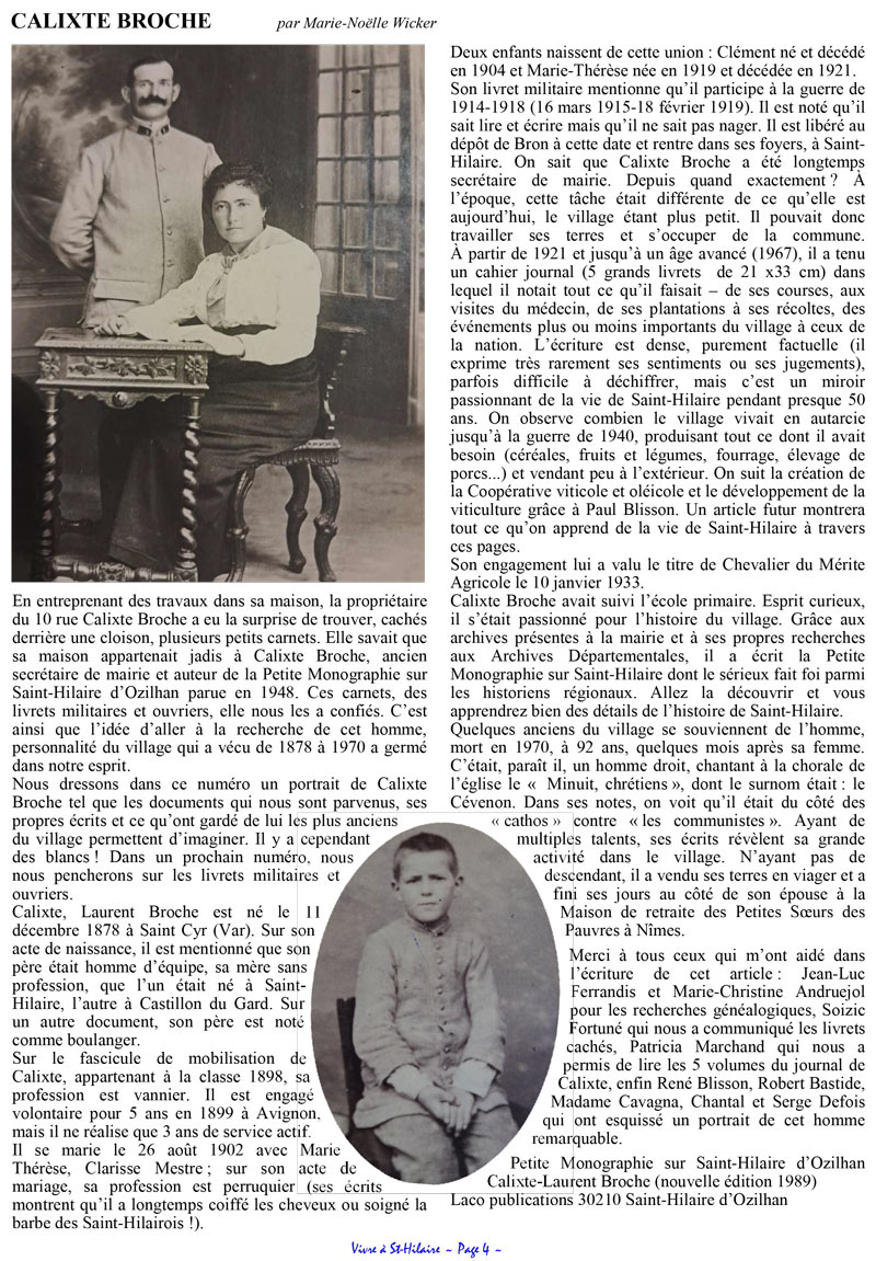Page 4 Lire CALIXTE BROCHE Lire Marie-Noëlle Wicker