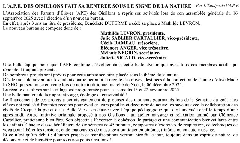 Page 6 Lire L'APE DES OISILLONS FAIT SA RENTREE Lire APE