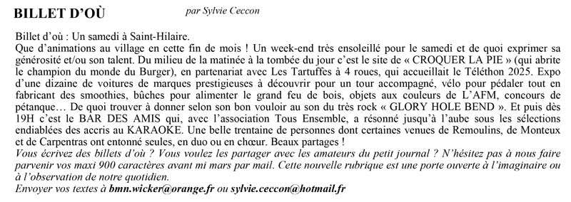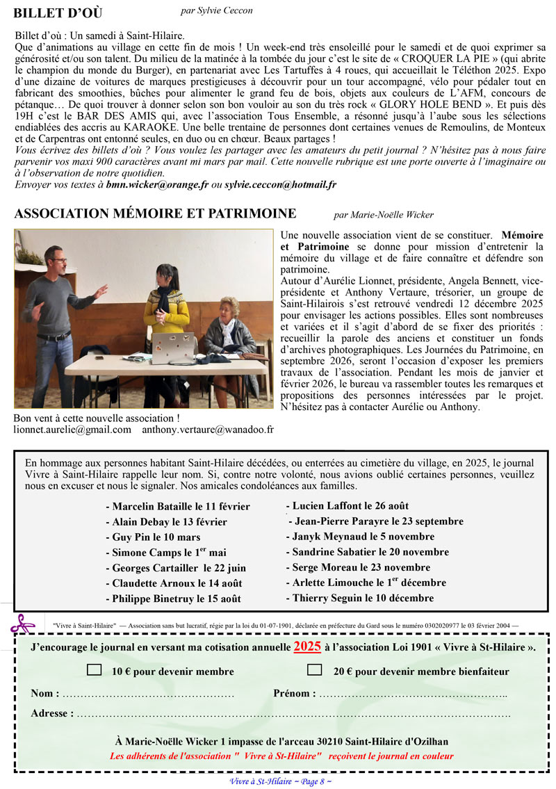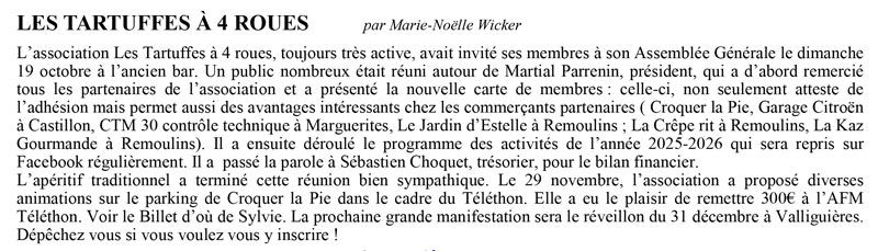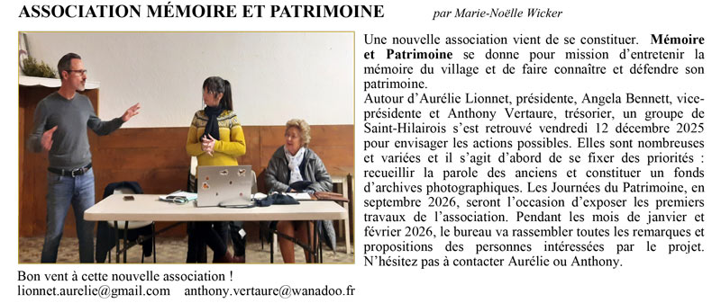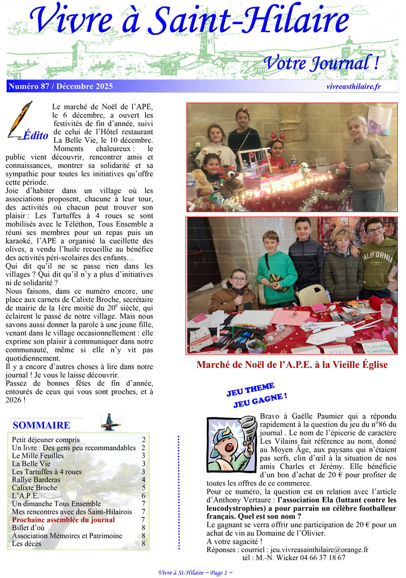 Accueil Contacts - Questions Les annonces Associations - Sites du village Toutes les parutions