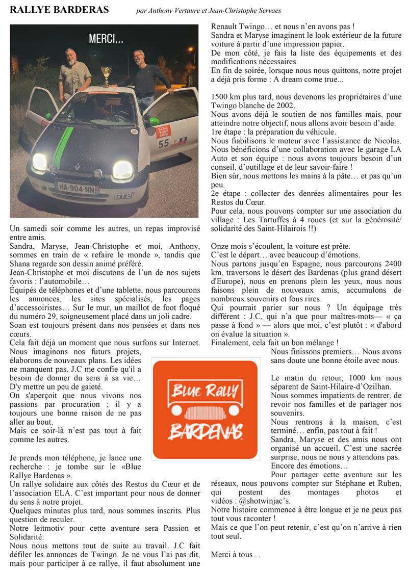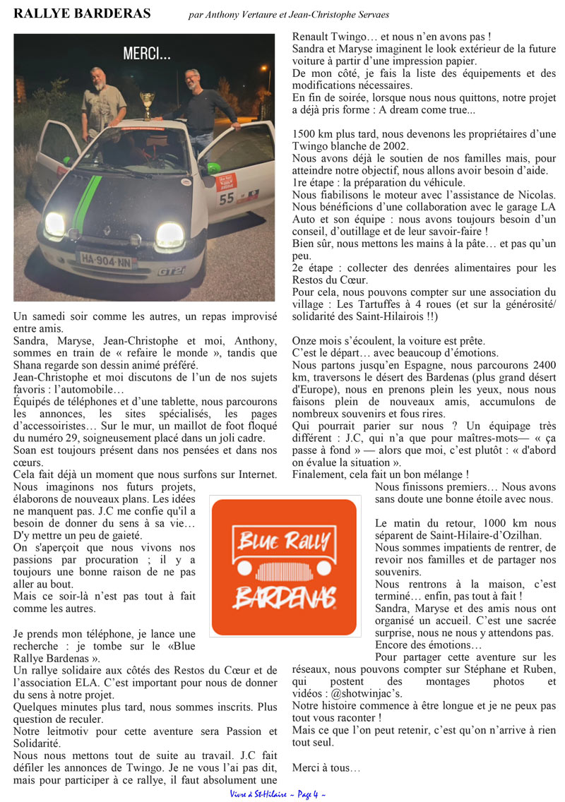 Page 4 Lire RALLYE BARDERAS Lire Anthony Vertaure et