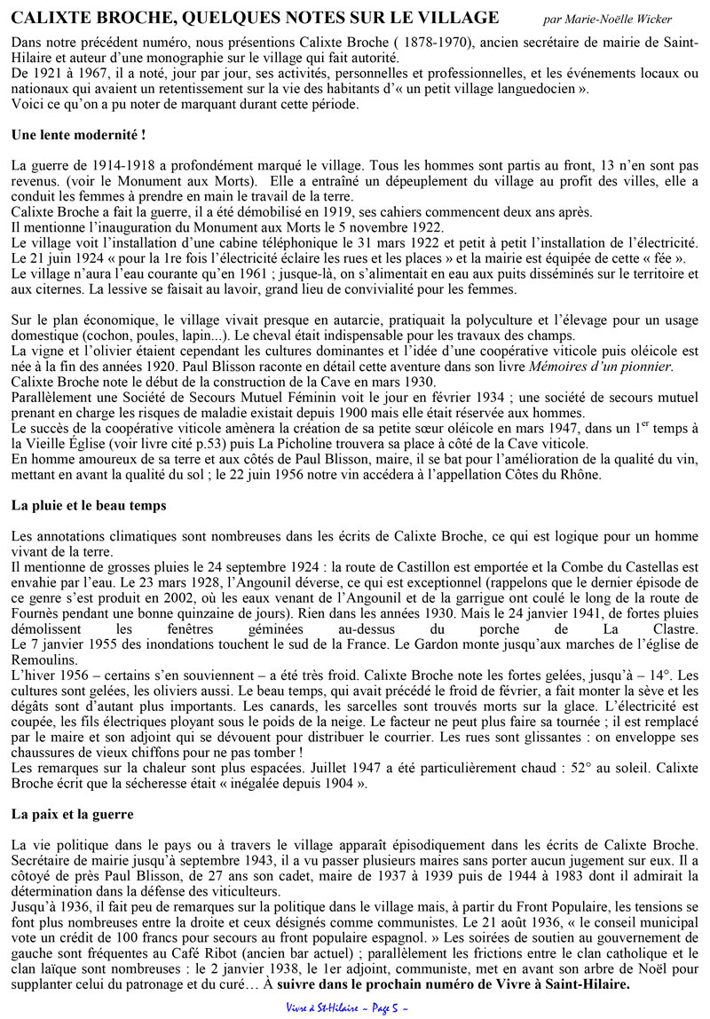 Page 5 Lire CALIXTE BROCHE QUELQUES NOTES SUR LE VILLAGE Lire Marie-Noëlle Wicker