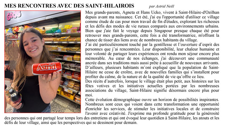 MES RENCONTRES AVEC DES SAINT HILAIROIS Lire Astrid Neill